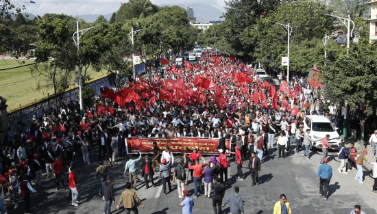 सर्वपक्षीय अन्तरिम सरकारको माग गर्दै काठमाडौंमा नेकपाको प्रदर्शन