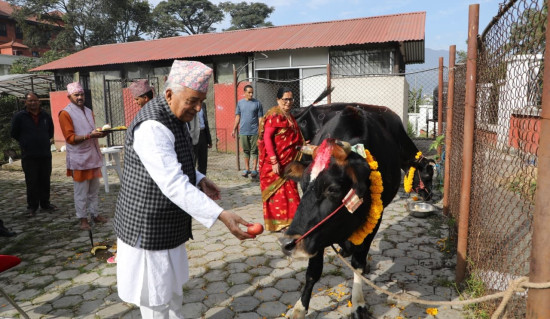 राष्ट्रपति पौडेलले गरे शितलनिवासमै गौ पुजा
