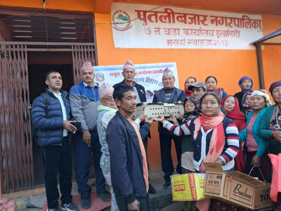 पुतलीबजार नगरपालिकाले गर्यो निःशुल्क कुखुराको चल्ला तथा दाना वितरण