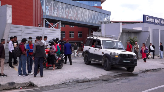 बालेन र सुदनविरुद्ध जाहेरी दर्ता गर्न अनेरास्ववियुको टोली जिल्ला प्रहरी परिसरमा