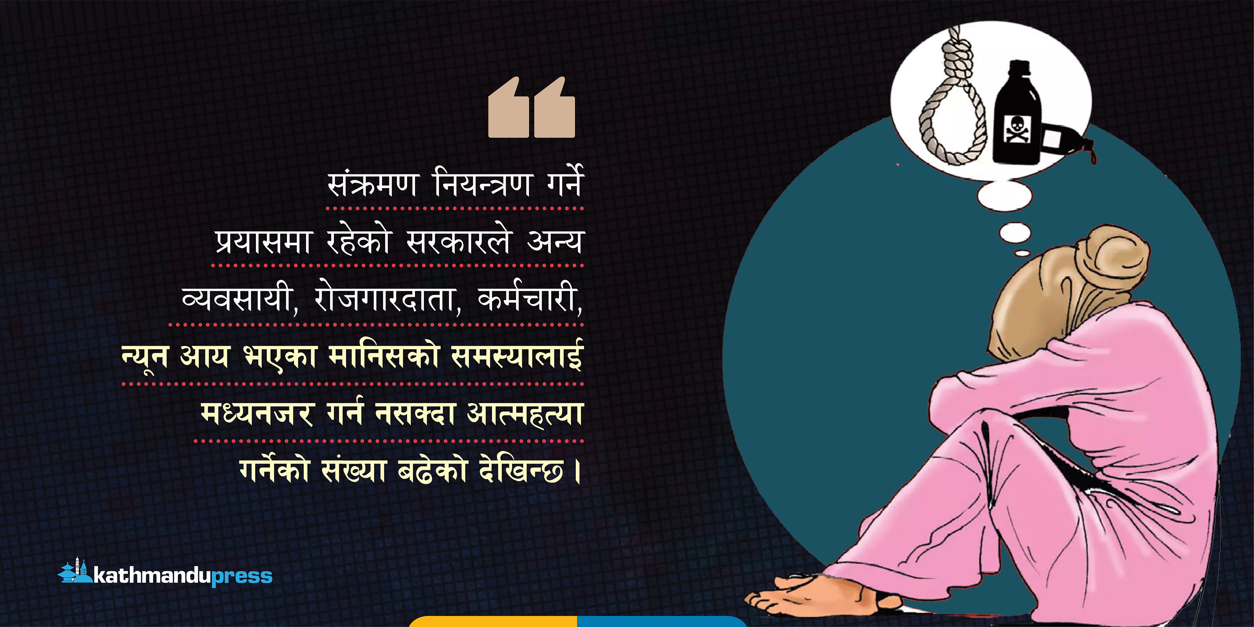 लकडाउनको अवधिमा कोरोनाले मर्ने भन्दा आत्महत्या गर्ने १० गुणा बढी