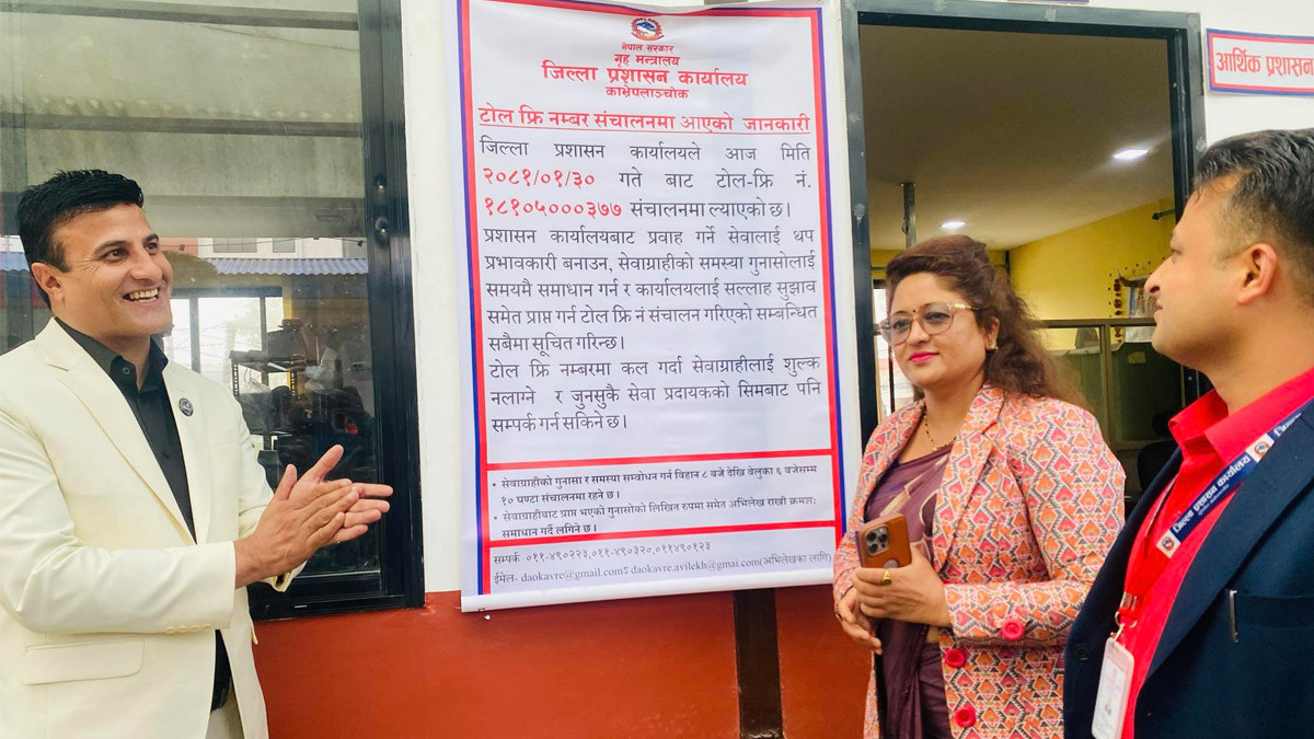 जिल्ला प्रशासन कार्यालय काभ्रेले सञ्चालनमा ल्यायो टोल फ्रि नम्बर