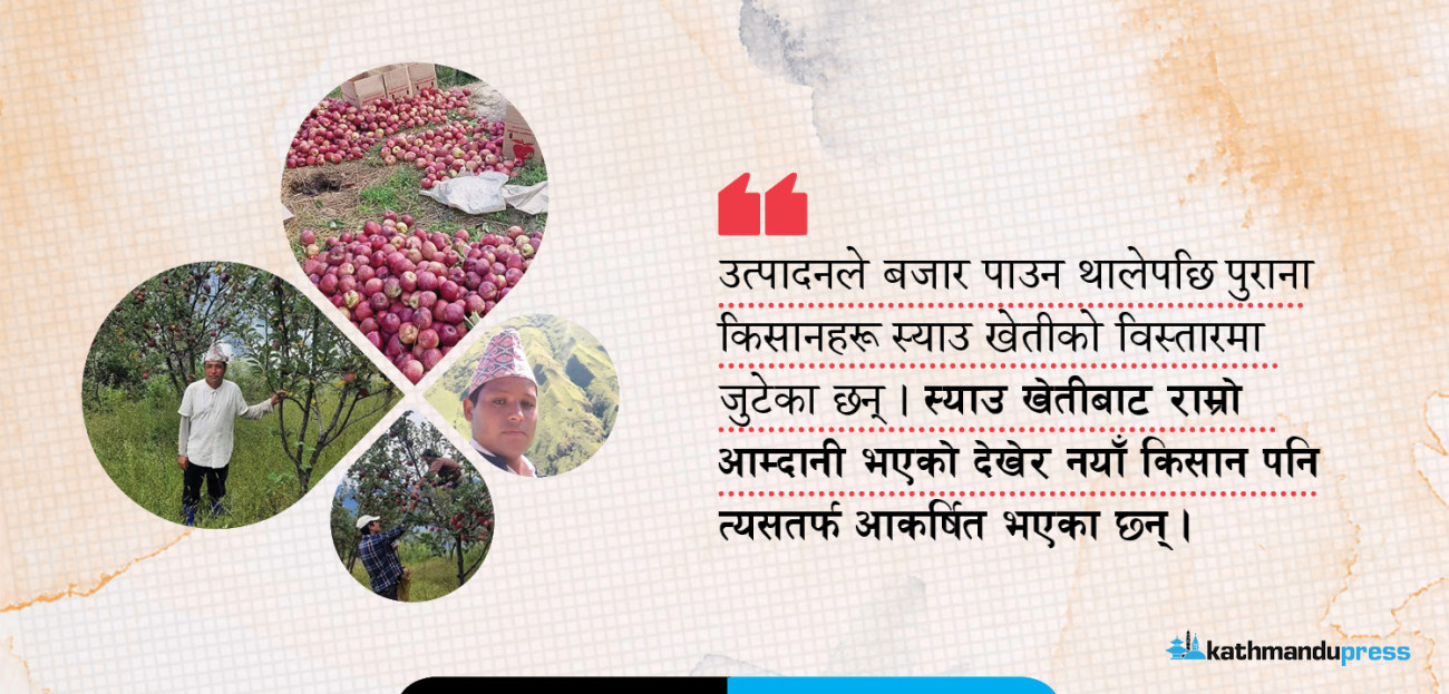 ‘स्याउ उत्पादन त बढ्याे तर बारीमै कुहाउनुपर्ने बाध्यता छ’
