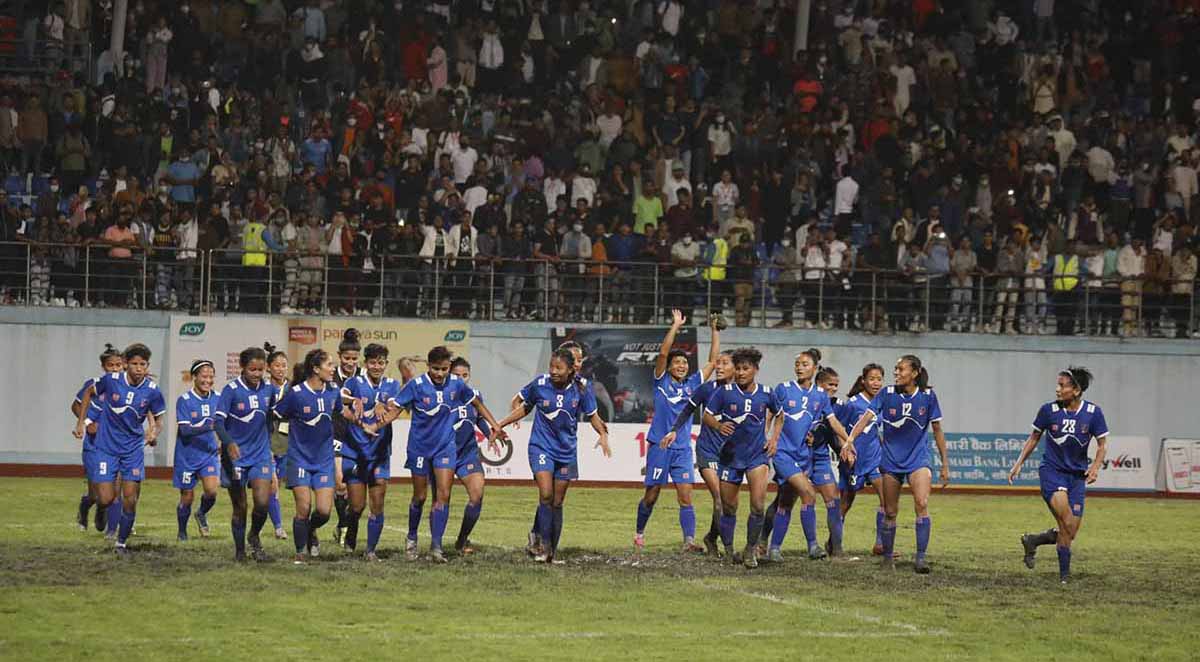 काठमाडौं, असार ३२ : नेपालले दक्षिण एसियाली फुटबल महासङ्घ (साफ) महिला यु–२० च्याम्पियनसिपमा श्रीलंकाविरुद्ध सानदार जित निकालेको छ । बंगलादेशको राजधानी ढाकास्थित बसुन्धरा किङ्स एरेनामा मंगलबार सम्पन्न खेलमा नेपाल ७–० ले नेपाल विजयी भएको हो ।