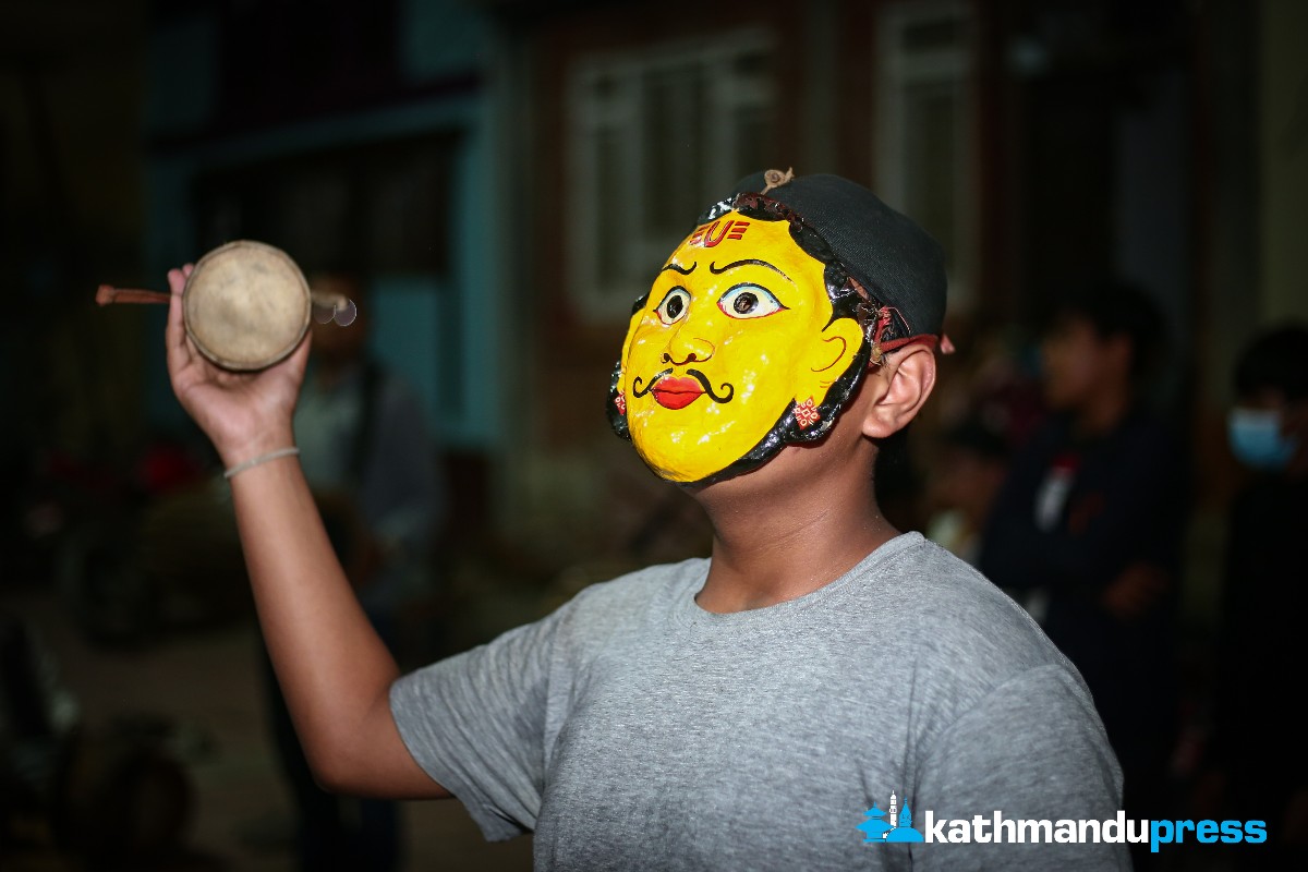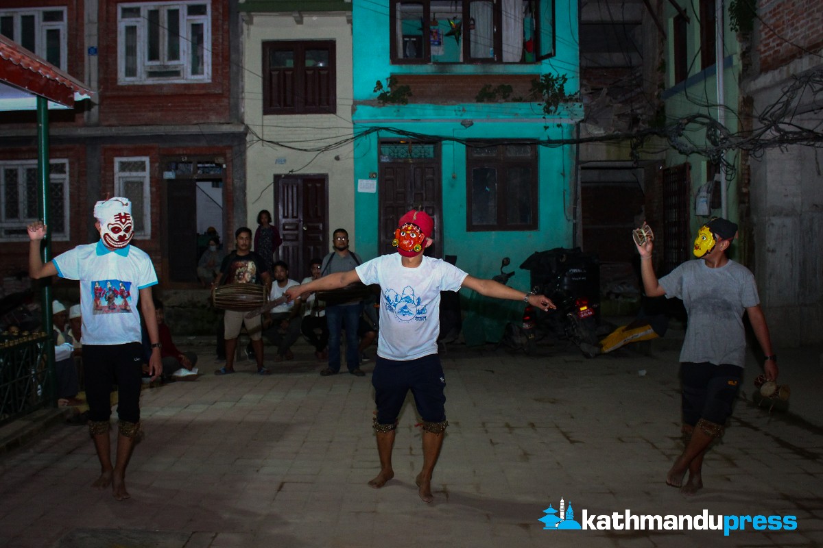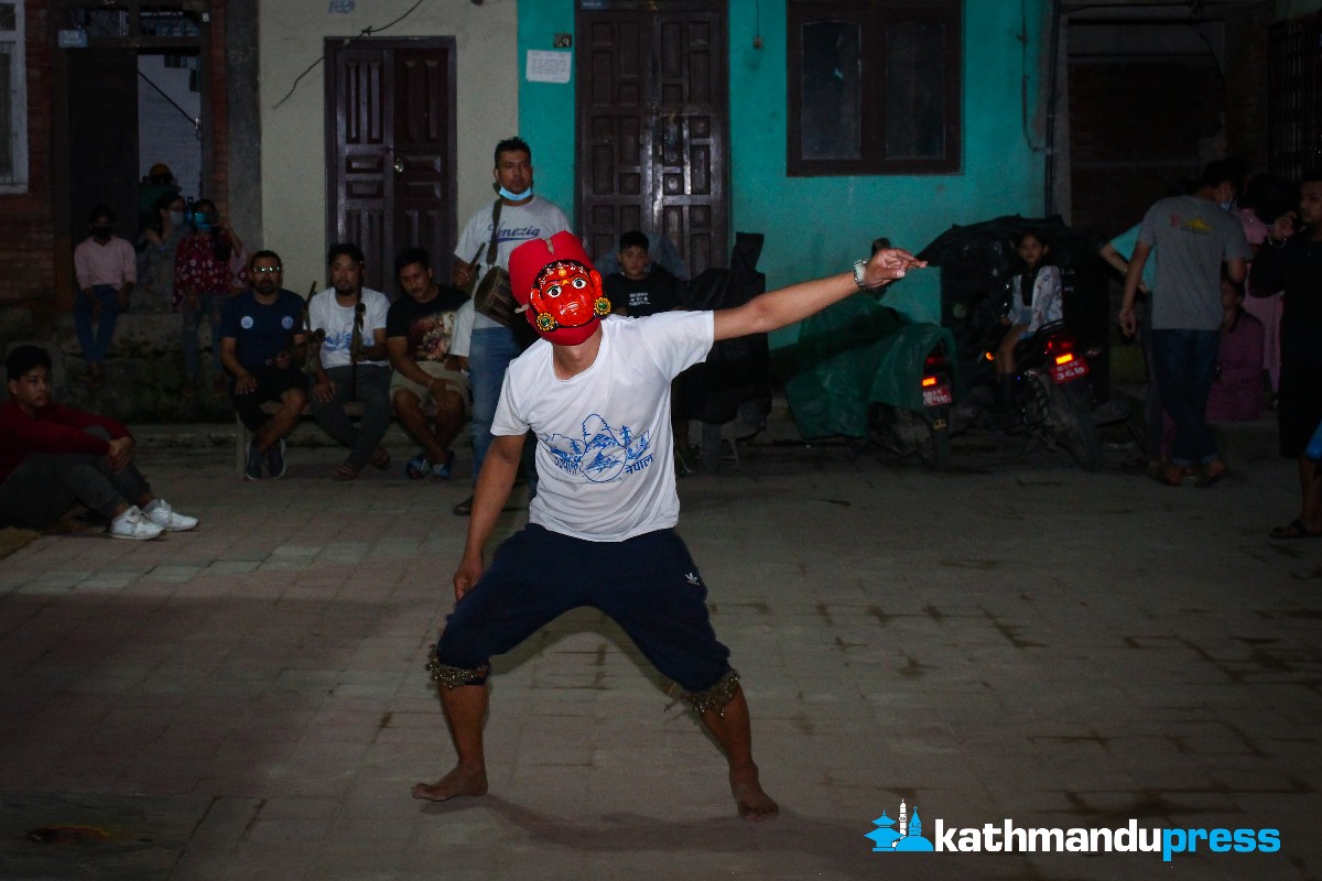 यस्तै लिंगो उठाएर इन्द्रजात्रा सुरु गरिने पहिलो दिन हनुमानढोकामा कायश्वर महादेव मन्दिरअगाडि यो नाच देखाइन्छ। यसलाई इन्द्रजात्रामा कुमारीको रथ जुन ठाउँबाट तानिन्छ। उक्त बाटोमा रहेका डबलीमा पनि मञ्चन गर्ने चलन छ।