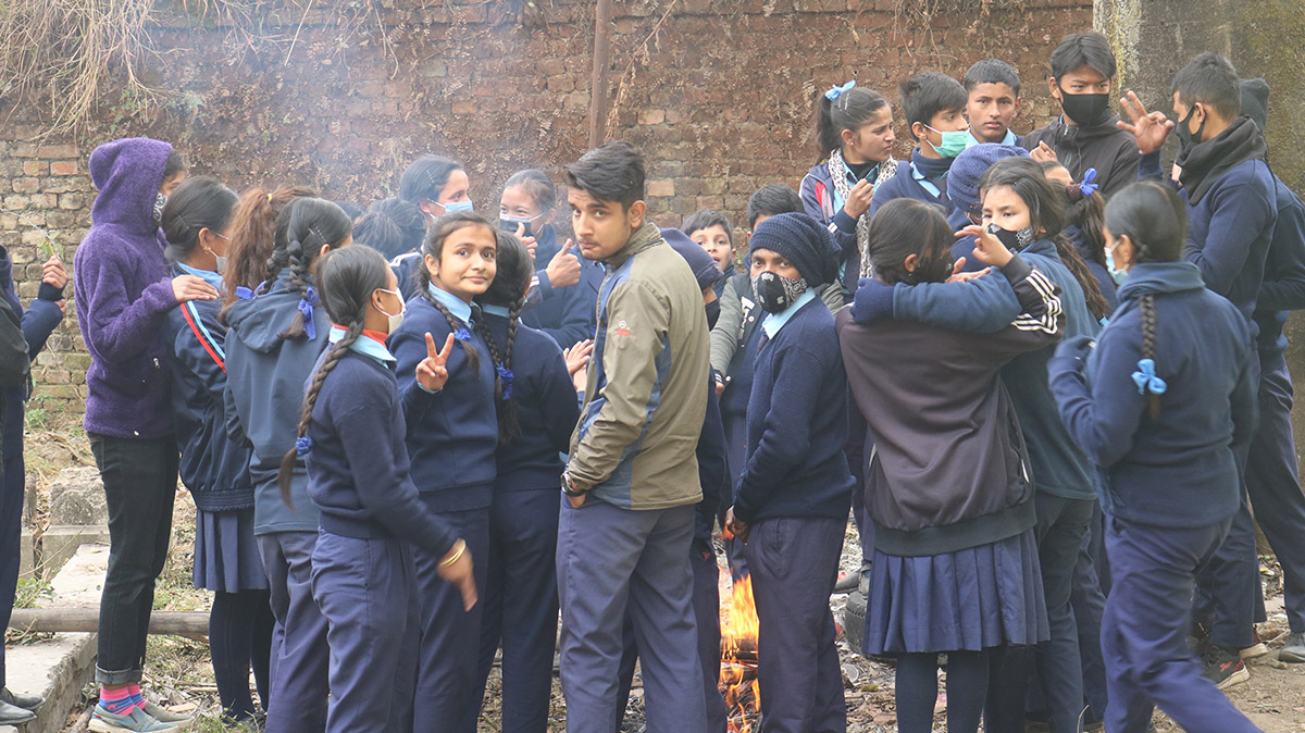 यसबारे उनले विद्यार्थीलाई सांकेतिक भाषामा बुझाउँदै थिए। पुस १३ गते काठमाडौंको नक्सालस्थित ‘केन्द्रीय बहिरा उच्च मावि’मा देखिएको दृश्य हो यो।