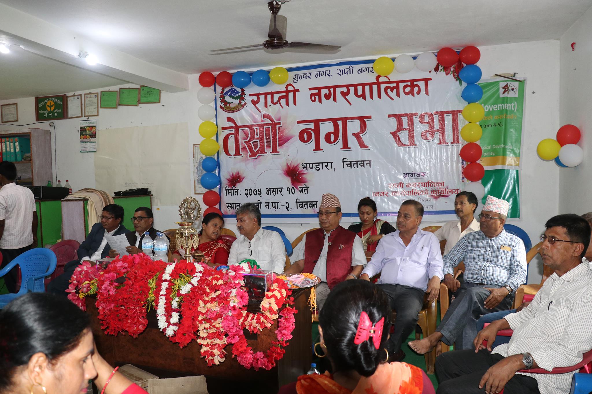 काठमाडाैं, वैशाख १ : नगरपालिका संघको २९औँ वार्षिकोत्सव (फागुन २९) का अवसरमा विभिन्न पाँच विधाअन्तर्गत उत्कृष्ट हुने सात नगरपालिकालाई पुरस्कृत गरियो, जसमध्ये एक थियो– राप्ती नगरपालिका । सामाजिक विकास विधाअन्तर्गत उत्कृष्ट ठहरिएको राप्तीले प्रधानमन्त्री शेरबहादुर देउवाबाट सम्मानपत्र पाएको छ ।