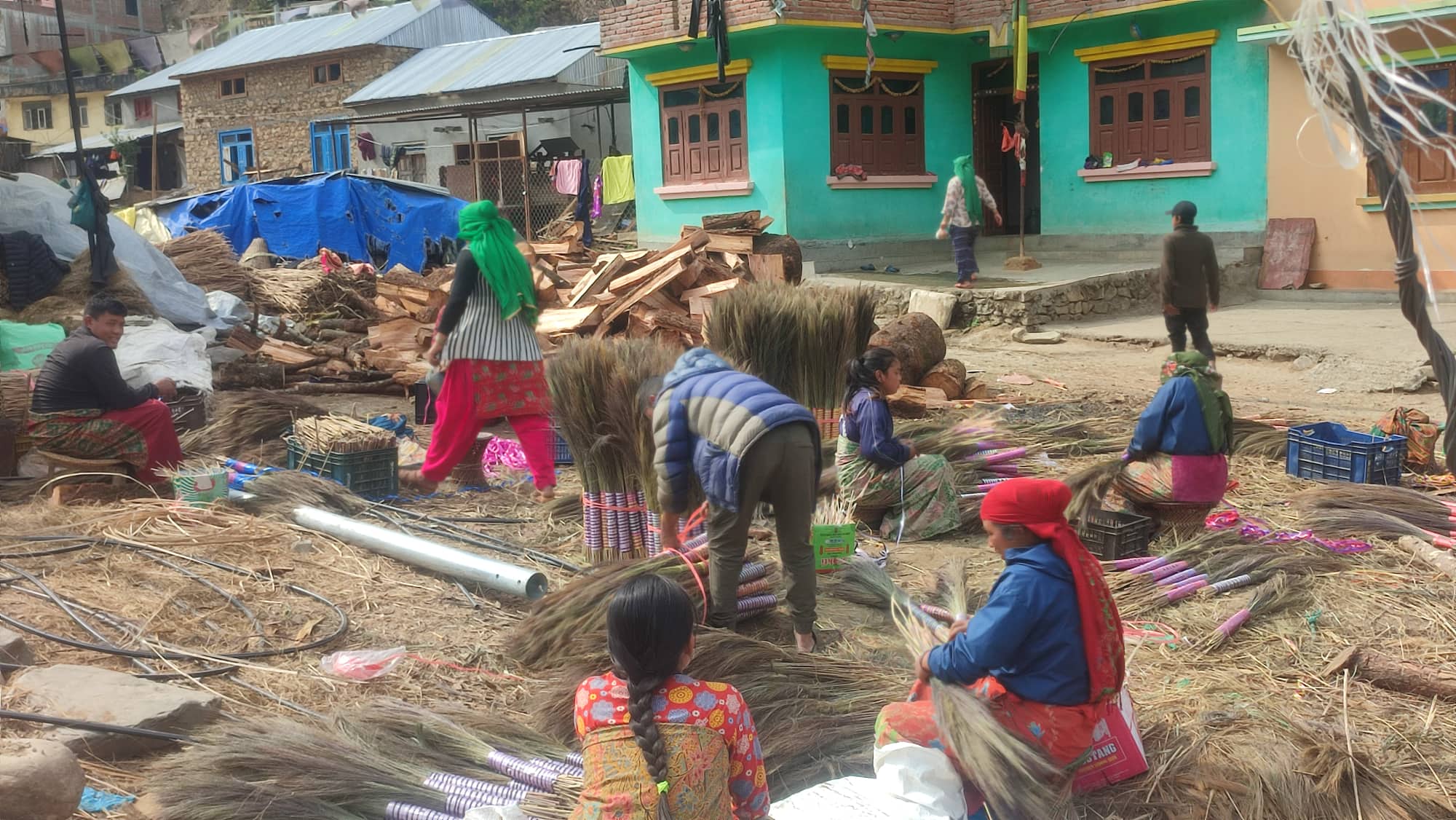 अस्मितासँगै अन्य दुई स्थानीय महिला र एक पुरुषले यहाँ कुचो बनाउने काम गरिरहेका छन्। उनीहरुले तयार पारेका कुचोलाई ४० वटाका दरले भारी तयार गर्दै थिए, कुचो व्यवसायी प्रताप सिङ्तानले। ‘साँझ बसमा हालेर काठमाडौं पठाउनु छ, हात अलि छिटो चलाउनू है,’ ५१ वर्षीय प्रतापले कामदारलाई भन्दै थिए, ‘जति धेरै कुचो बनायो, उति फाइदा– तपाईंहरूलाई पनि, मलाई पनि।’