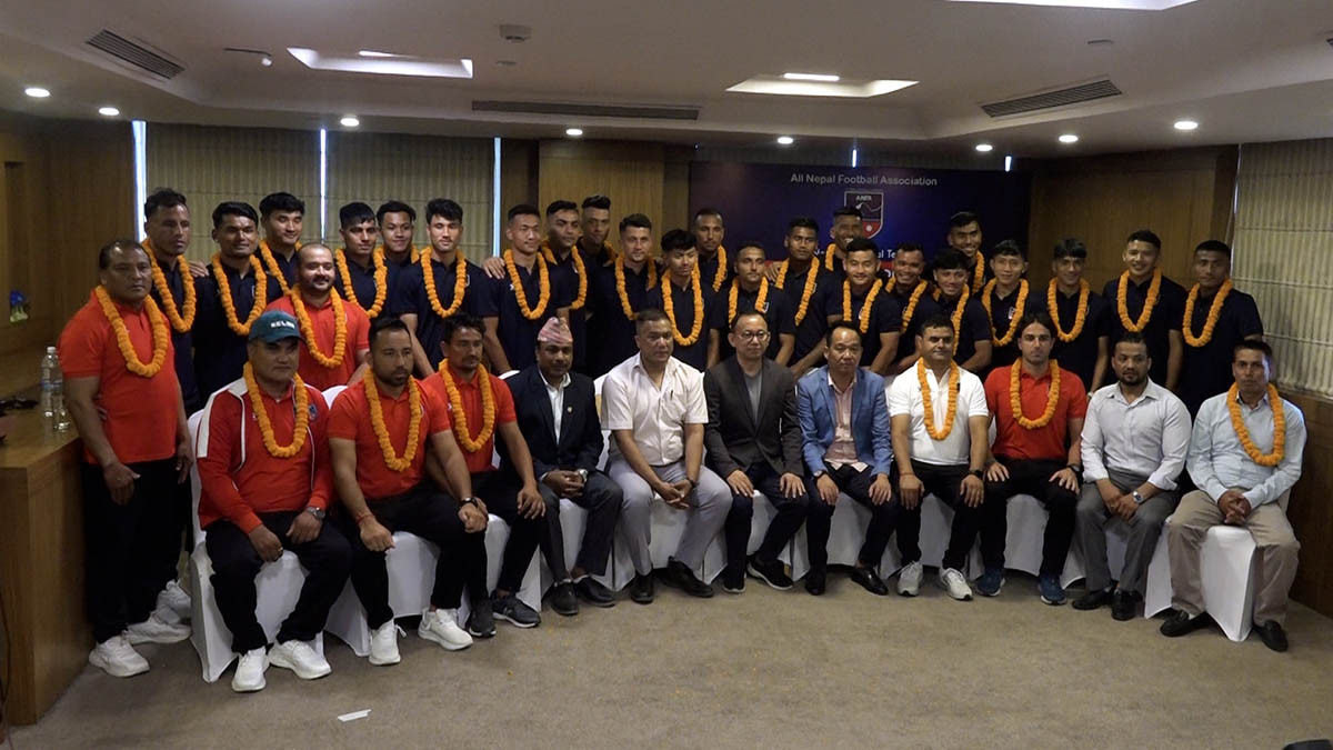 युएईविरुद्धको विश्वकप छनोट खेल्ने नेपाली राष्ट्रिय फुटबल टिमको बिदाइ