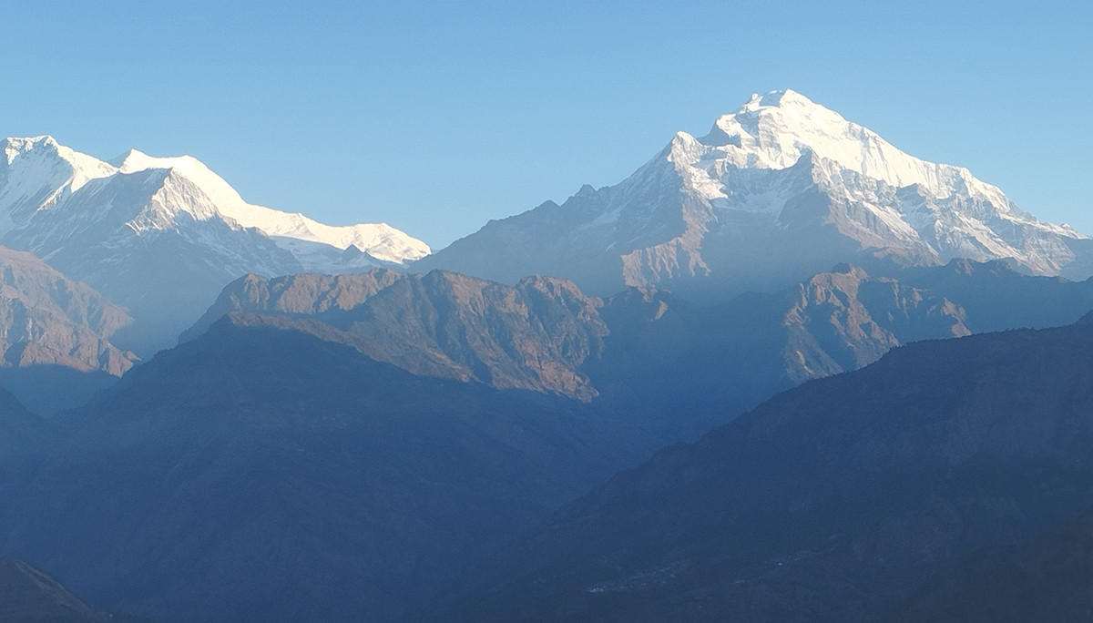हिउँको मात्रा घट्दा धमिलिँदै धौलागिरि