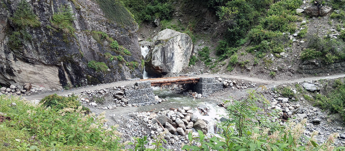 मनाङकाे चामेमा सवारीसाधनका लागि काठेपुल