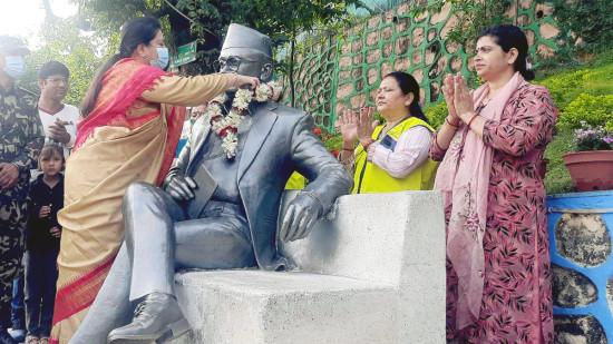 मदनको सालिकमा पूर्वराष्ट्रपति भण्डारीद्वारा माल्यार्पण