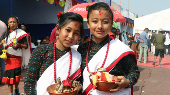 जातीय भेषमा नेवार समुदायका बालिका