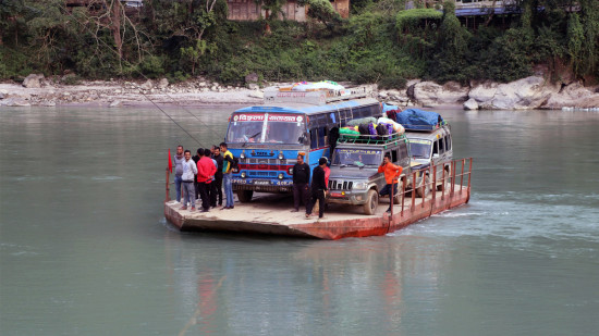 अरुण नदीको सतीघाटमा फेरीबाट सवारीसाधन तारिँदै