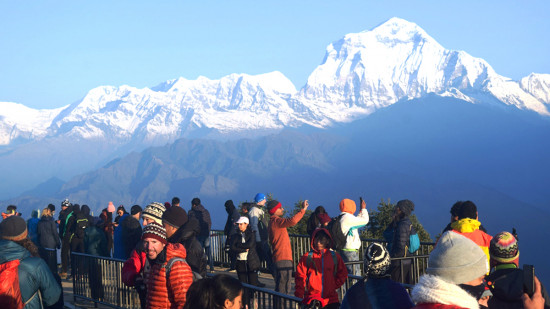 पुनहिलबाट मनाेरम हिमाल हेरेर रमाउँदै पर्यटक