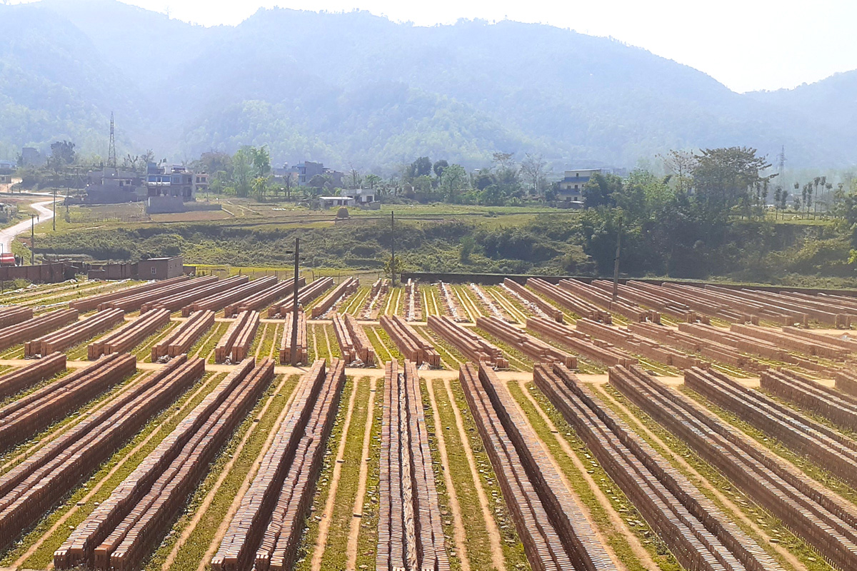 माछापुच्छ्रे इँटा उद्योगमा सुकाइएका इँटा