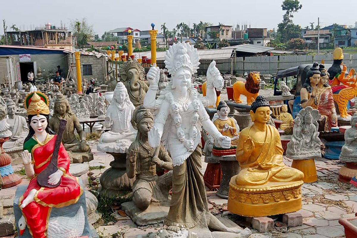 सिमेन्टबाट बनाइएका आकर्षक मूर्ति