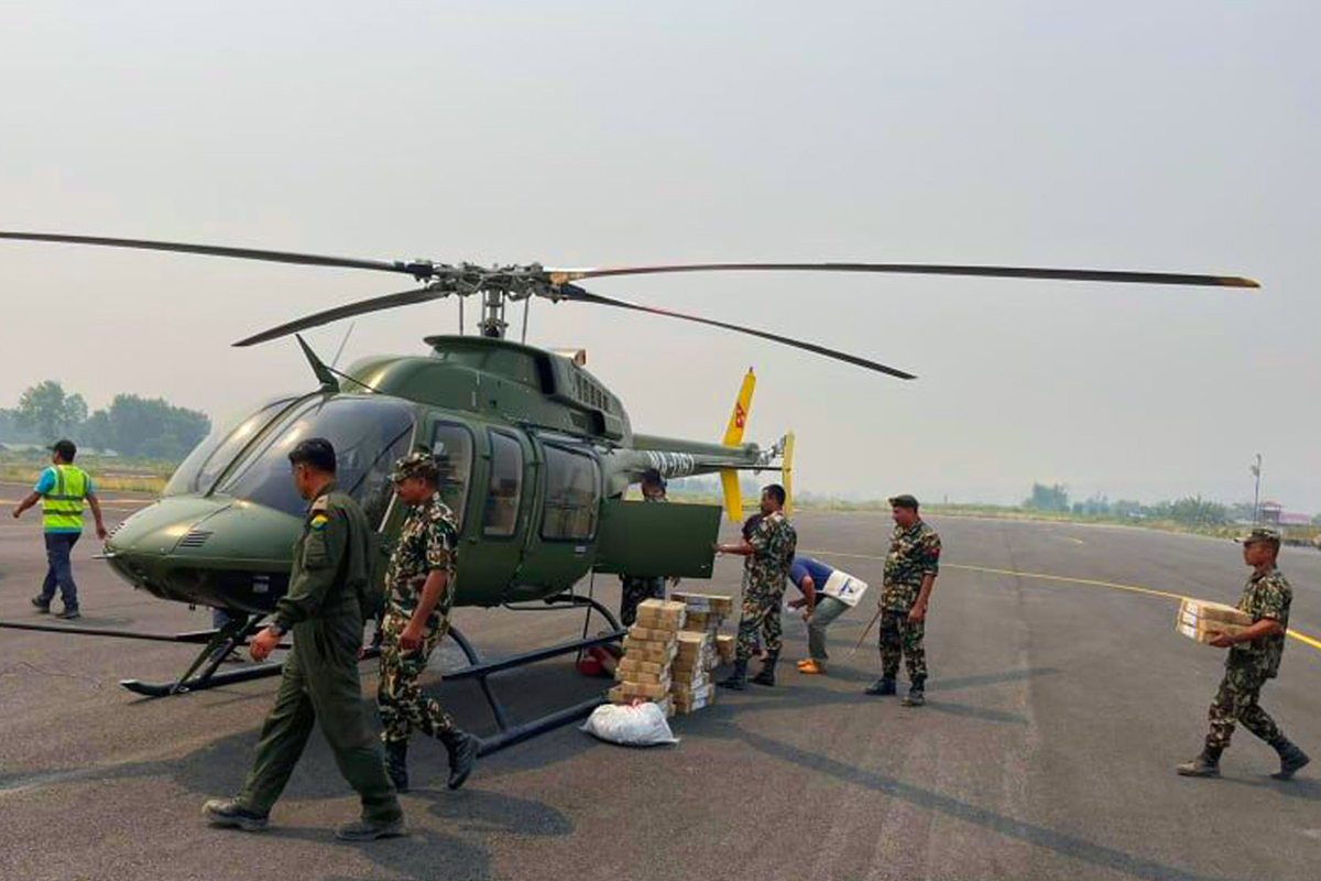 सेनाको हेलिकोप्टरबाट हिमाली जिल्लामा मतपत्र ढुवानी