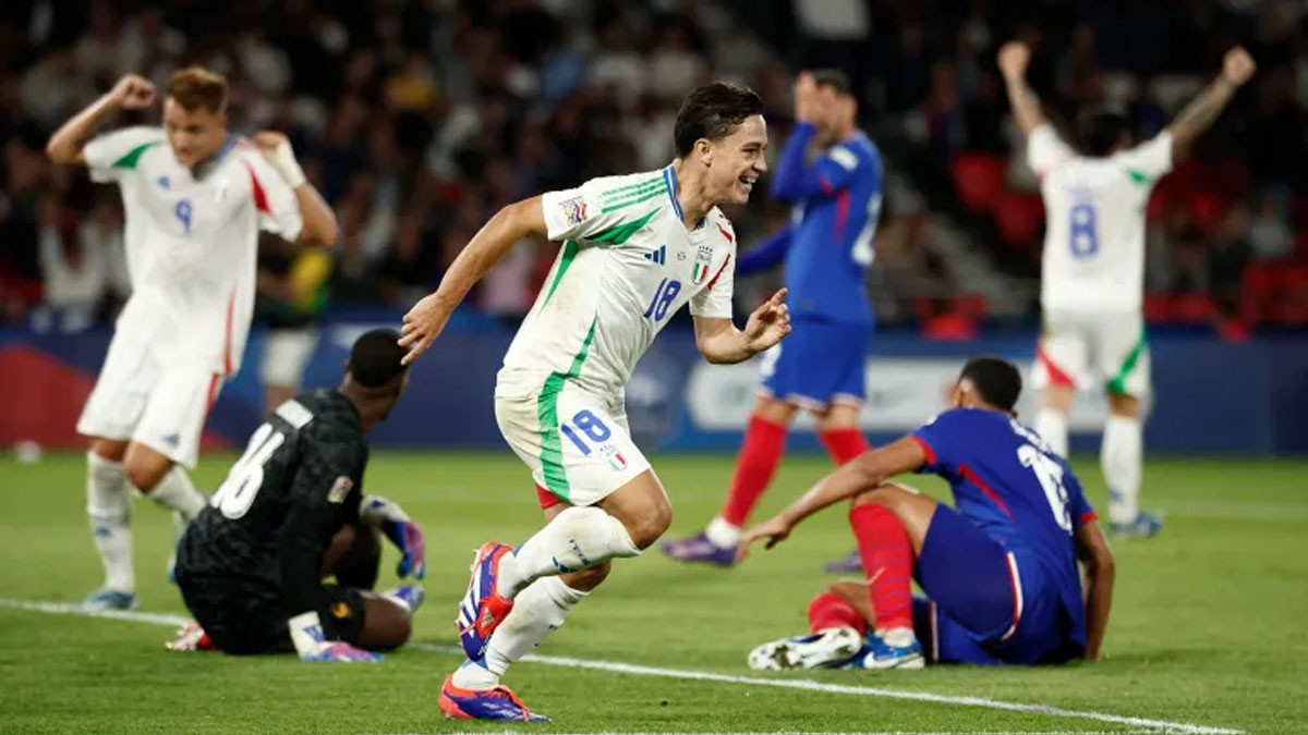 नेसन्स लिगमा फ्रान्समाथि इटालीकाे जितसमूह बीअन्तर्गत शुक्रबार राति पेरिसस्थित पार्क डे प्रिन्समा १३ सेकेन्डमै लिएको अग्रता जोगाउन नसक्दा फ्रान्स इटालीसँग ३–१को नमीठो हार व्यहोर्न बाध्य भयो।