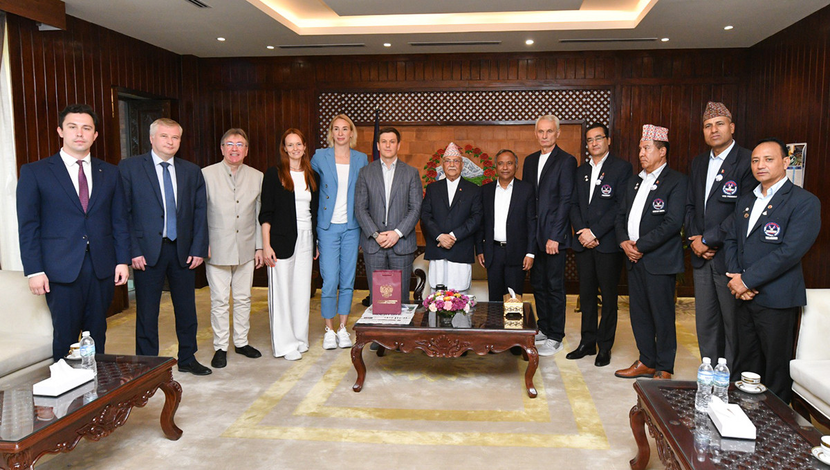 प्रधानमन्त्रीसँग रुसी महिला भलिबल टोलीको भेटप्रधानमन्त्री निवास बालुवाटारमा आज रुसी महिला भलिबल टोलीसँग भएको भेटमा प्रधानमन्त्री ओलीले दुई देशबीच सोभियत संघ हुँदादेखि नै रुसबाट नेपालले शिक्षा, यातायातलगायत क्षेत्रमा सहयोग प्राप्त...