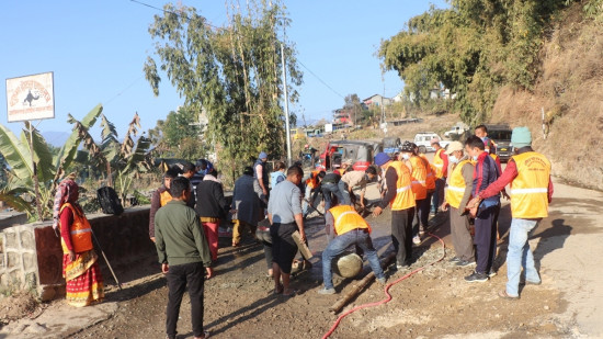 भोजपुरको पुरानो बसपार्क क्षेत्रको सडक मर्मत