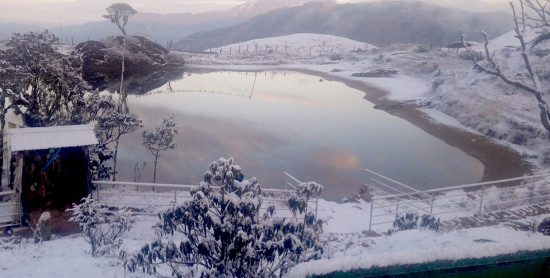 हिउँले सेताम्य बन्याे तेह्रथुमको तीनजुरे