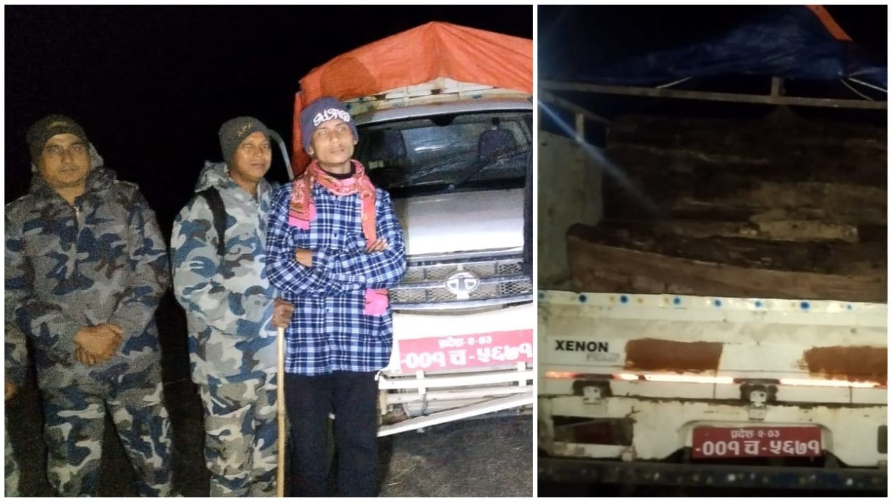 अवैध काठ लोड भएको गाडीसहित दुईजना पक्राउ