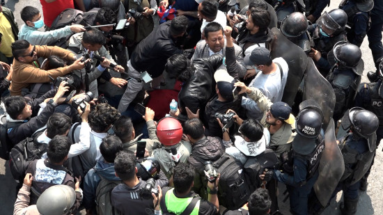 कुलमानका समर्थक र प्रहरीबीच प्राधिकरण अगाडी धकेलाधकेल