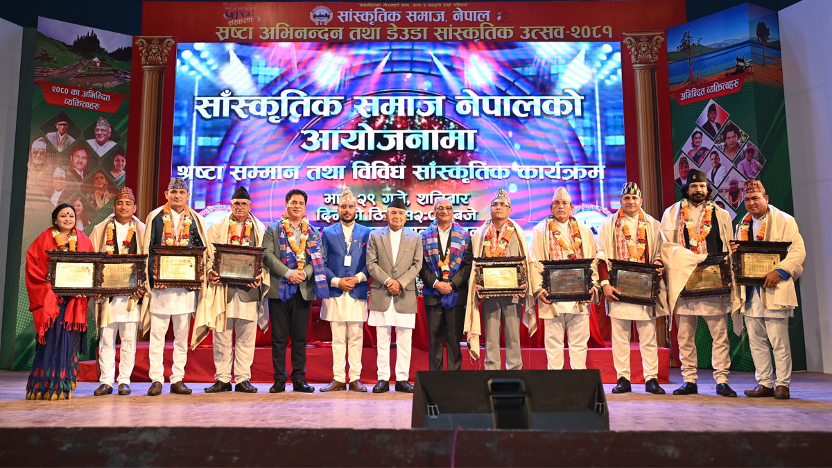राष्ट्रपति पौडेलबाट दश स्रष्टा सम्मानितस्रष्टा अभिनन्दन तथा देउडा सांस्कृतिक साँझ कार्यक्रमको उद्घाटनपछि राष्ट्रपति पौडेलले सुदुरपश्चिम तथा कर्णालीको भाषा, साहित्य, संस्कृति, खेल तथा पत्रकारितामार्फत् योगदान पुर्याउने व्यक्तिहरूलाई सम्मान गरेका हुन्।