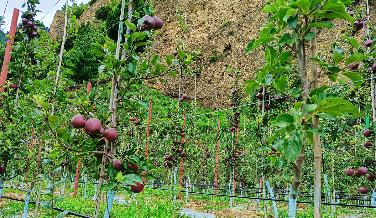 मुस्ताङका बगैँचामा लटरम्म स्याउ