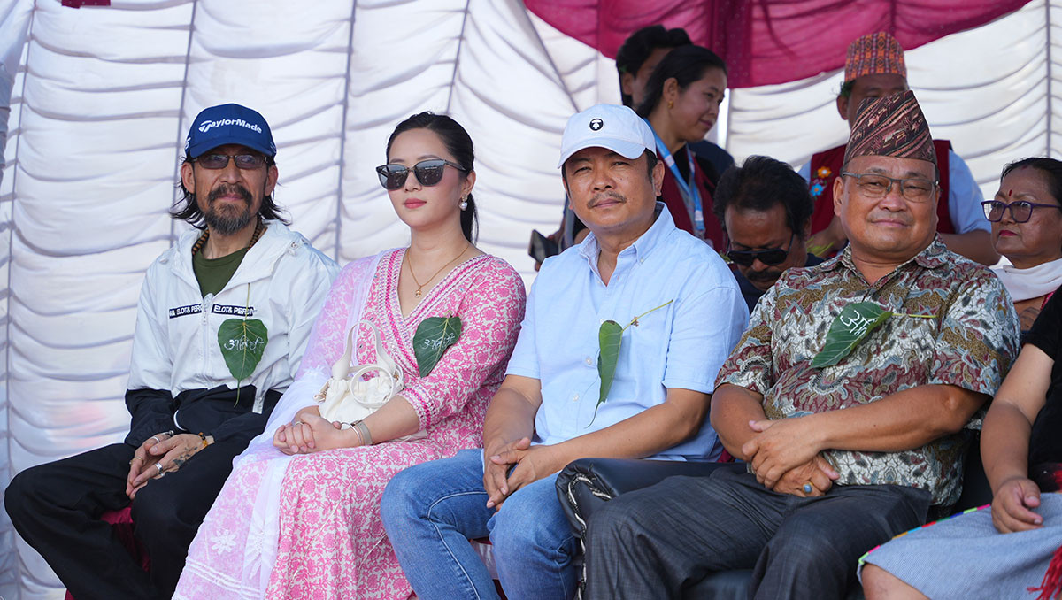 अर्थमन्त्री वर्षमान पुनले शुभारम्भ गरेको भूमे पर्व मेलाको कार्यक्रममा ‘घर ज्वाइँ’ का कलाकार दयाहाङ राई, मिरुना मगर, निर्देशक अनिल बुढामगर, कलाकार शिशर वाङ्देल, भोलाराज सापकोटालगायत...