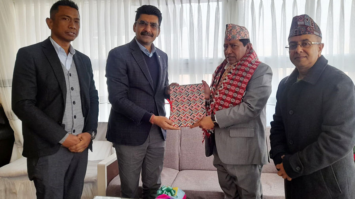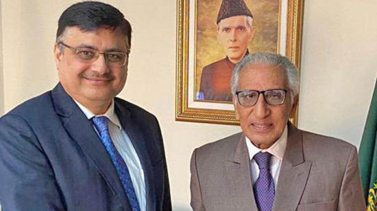 राजदूत अधिकारीले भेटे पाकिस्तानी प्रधानमन्त्रीका विदेश मामिला सहायक