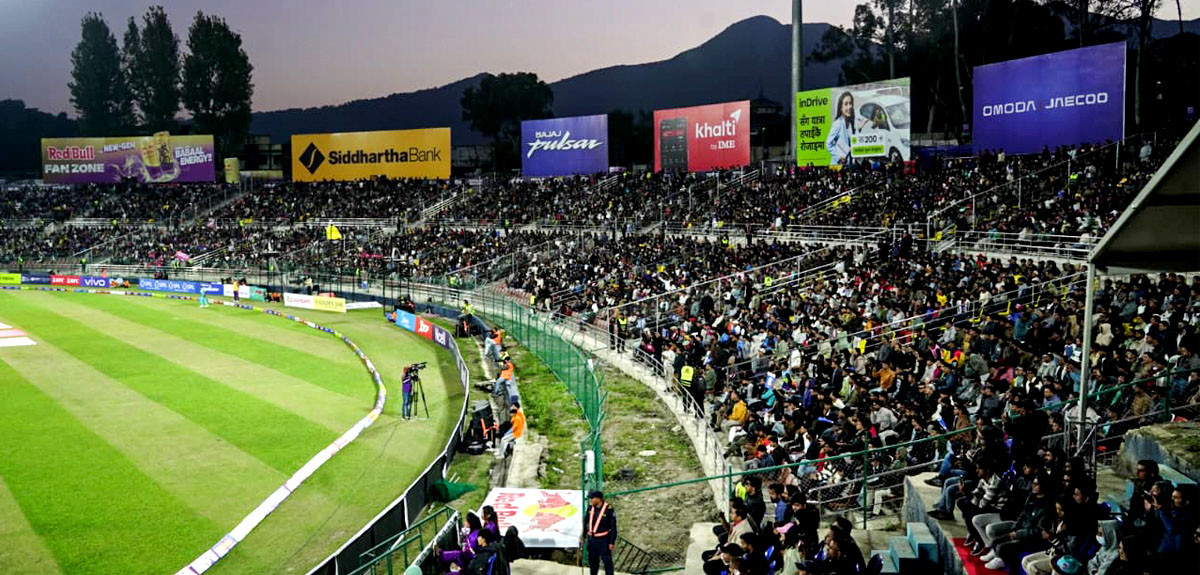 १० हजारबढी दर्शकले अहिले प्यारापिटमा बसेर क्रिकेटको मज्जा लिइरहेका छन्। पहिलो पटक फ्लडलाइटमा क्रिकेटको मज्जा लिँदै उनीहरू आ–आफ्नो टिमलाई उत्साहका साथ समर्थन गरिरहेका छन्।