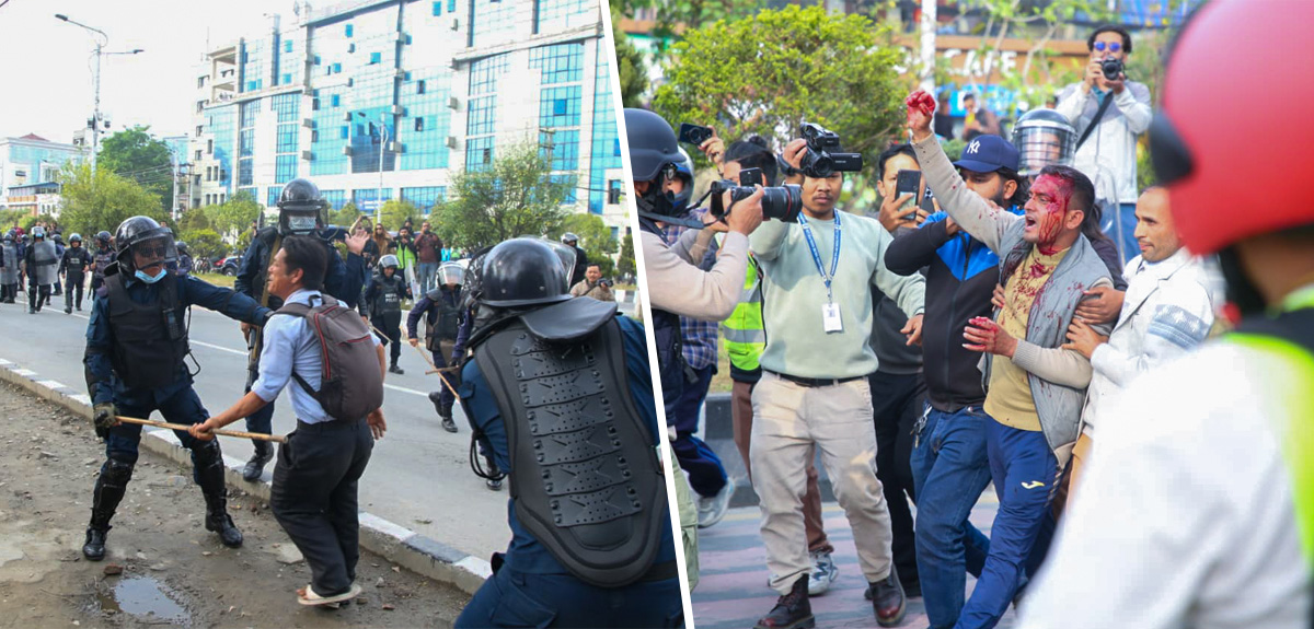 तस्बिरहरूबबरमहलमा एमाले कार्यकर्ता र प्रहरीबीच झडपअध्यक्ष केपी शर्मा ओली पक्राउको विरोधमा प्रदर्शन गरिरहेका एमाले कार्यकता र प्रहरीबीच आइतबार दिउँसो झडप भएको हो।